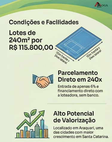 Se você busca compra um lote ainda na planta e ter as melhores condições de parcelamento e grande valorização, este é um ótima opção na cidade de Araquari