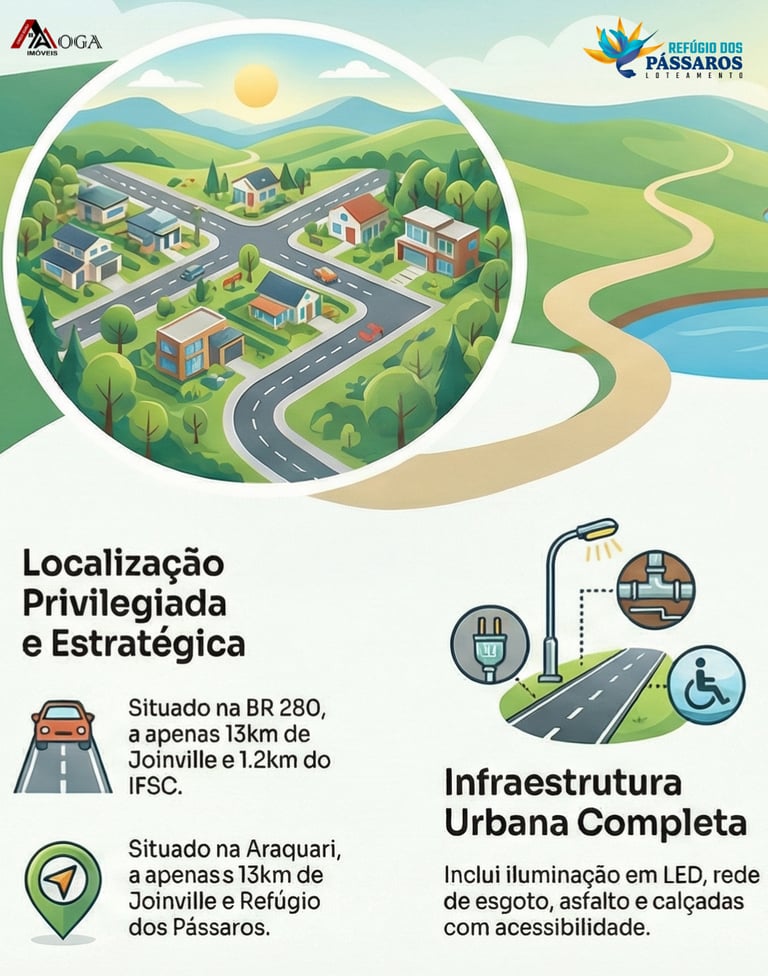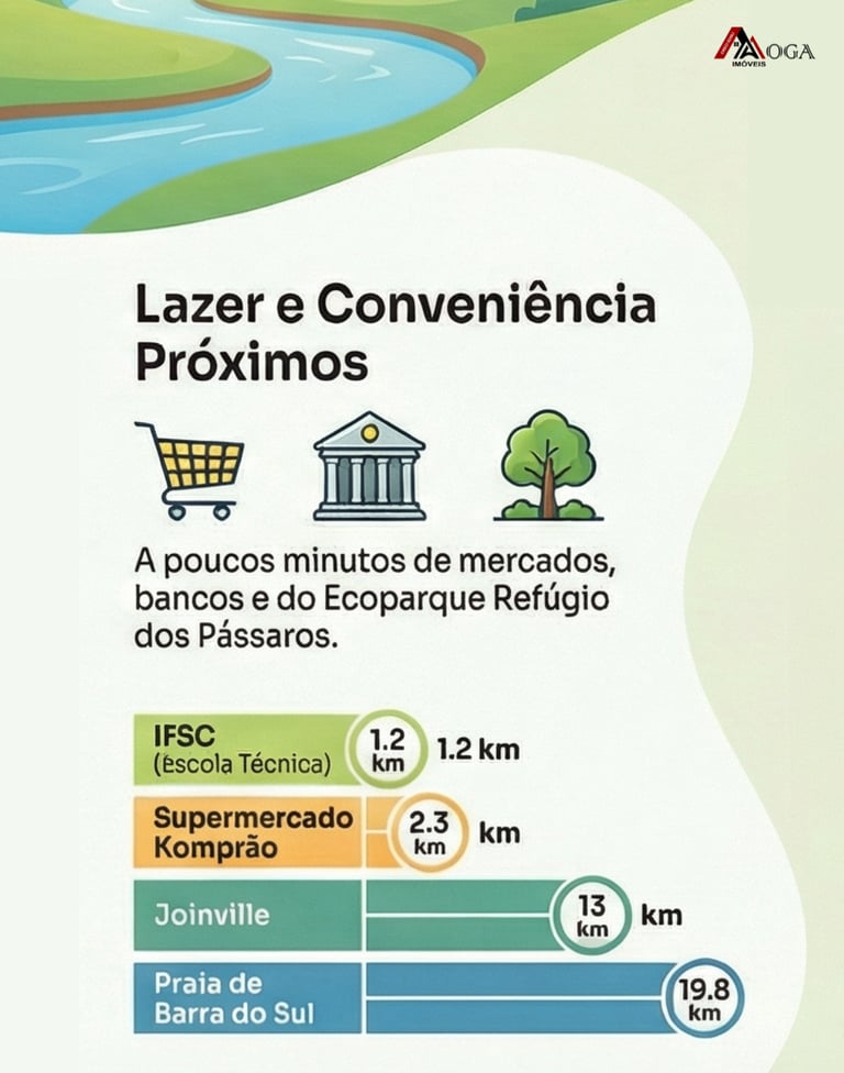 Com acesso principal pela BR 280, no Km 23, em frente ao Loteamento Iguaçu que foi um sucesso de vendas, ficando apenas à 1.2km do IFSC e a 2.3km do Supermercado Komprão
